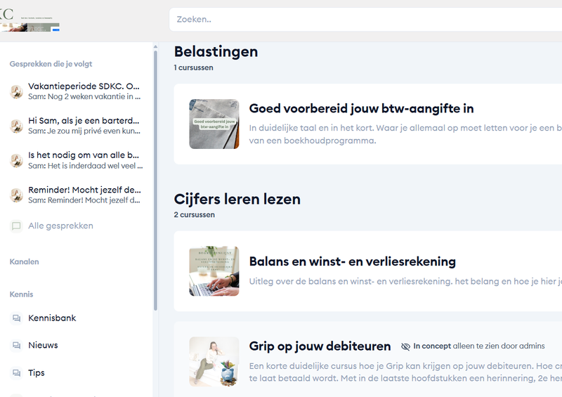 Onze aanpak is heel simpel. We hebben meerdere korte cursussen in de community staan, binnen 60 minuten per onderwerp stel je jezelf scherp en weet je de belangrijkste punten. Door de masterclasses, online vragenuurtjes en korte lijntjes als je een vraag stelt heb jij op korte termijn controle over alles. Hierdoor creëer je kennis en dus rust